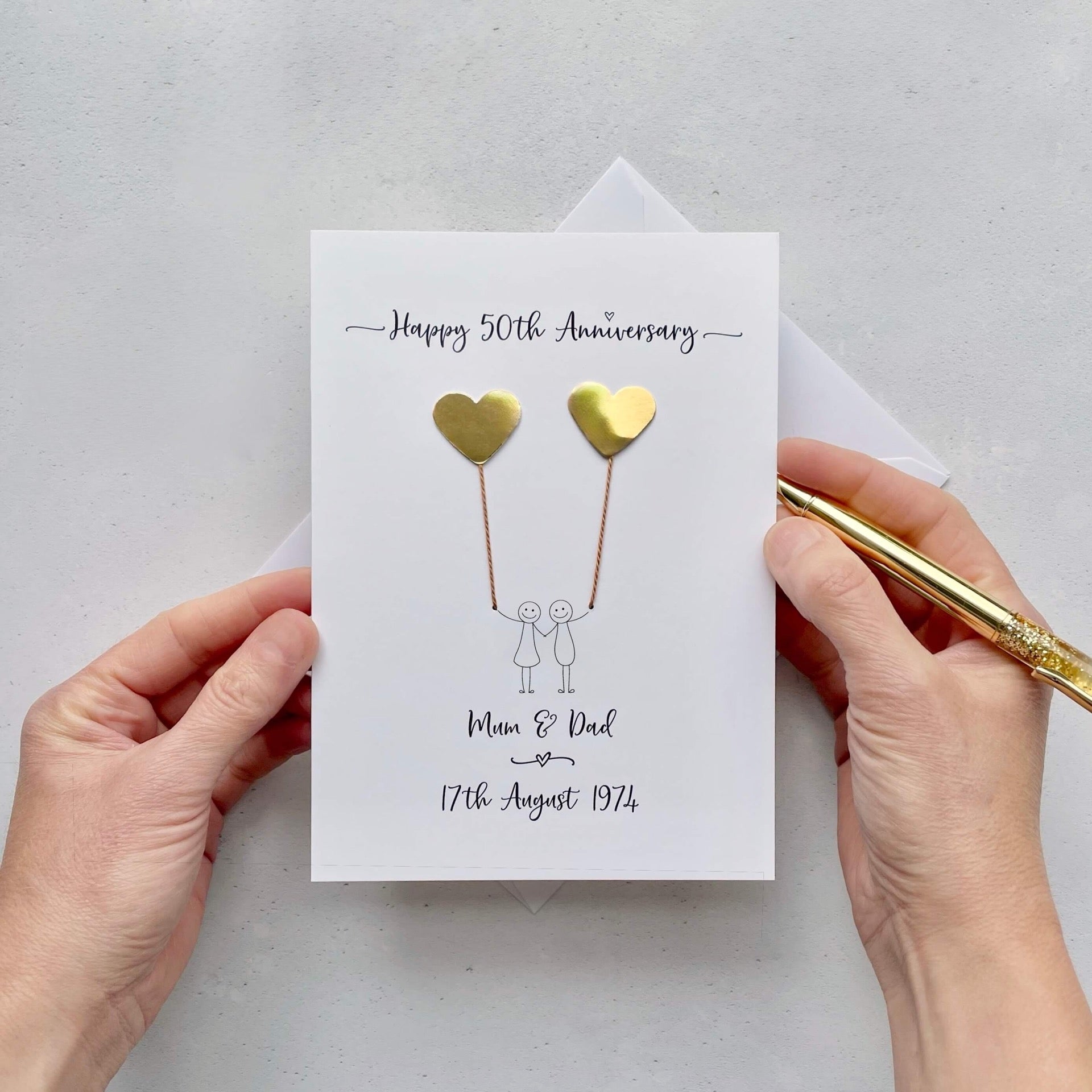 If you are sending to someone else, your 50th anniversary card will go inside a white envelope and then be posted in a board backed envelope to ensure it reaches your recipient in perfect condition.