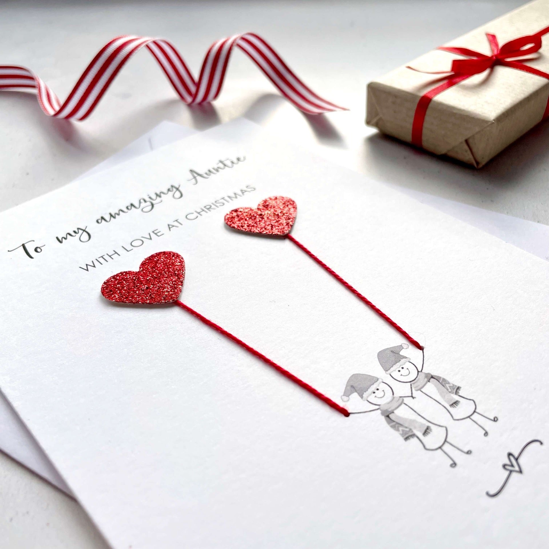 'To my amazing Auntie' or To our amazing Auntie' will be printed at the top of the card, above the text 'with love at Christmas'.