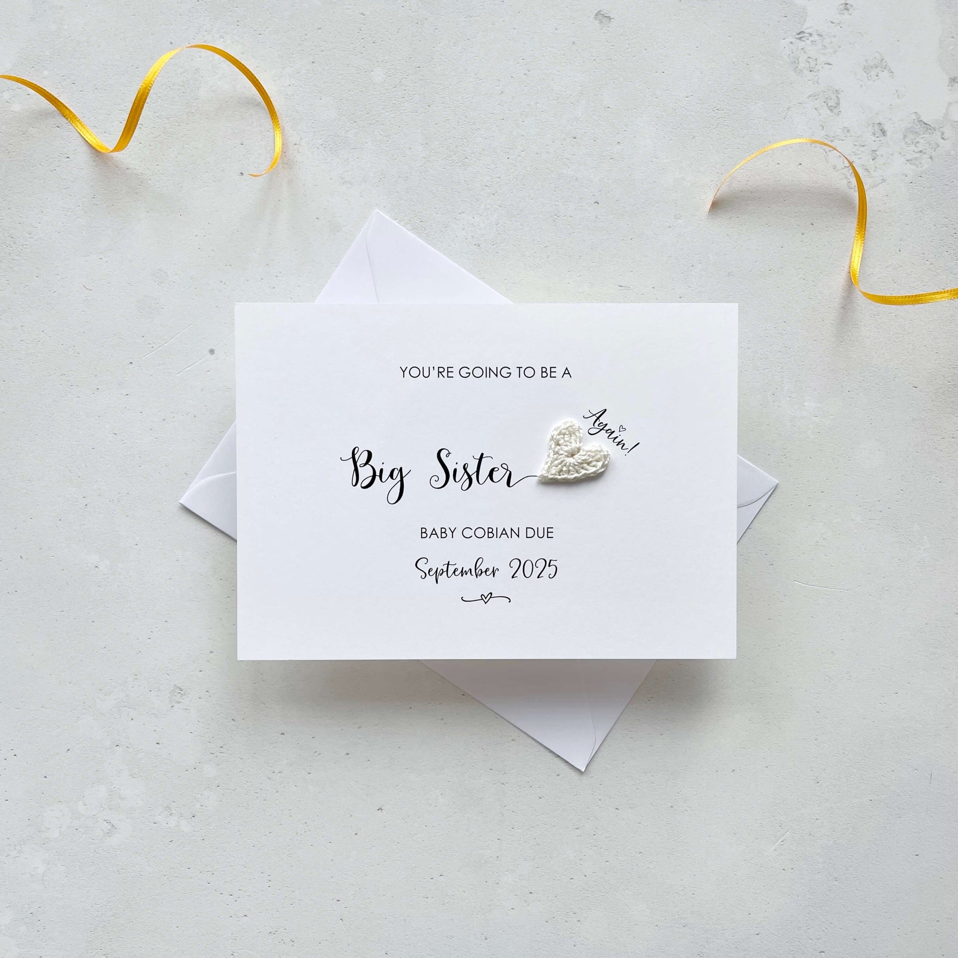 Congratulate your little one on becoming a big sister with this beautiful card! Finished with a mini crochet heart, it's sure to make her smile!