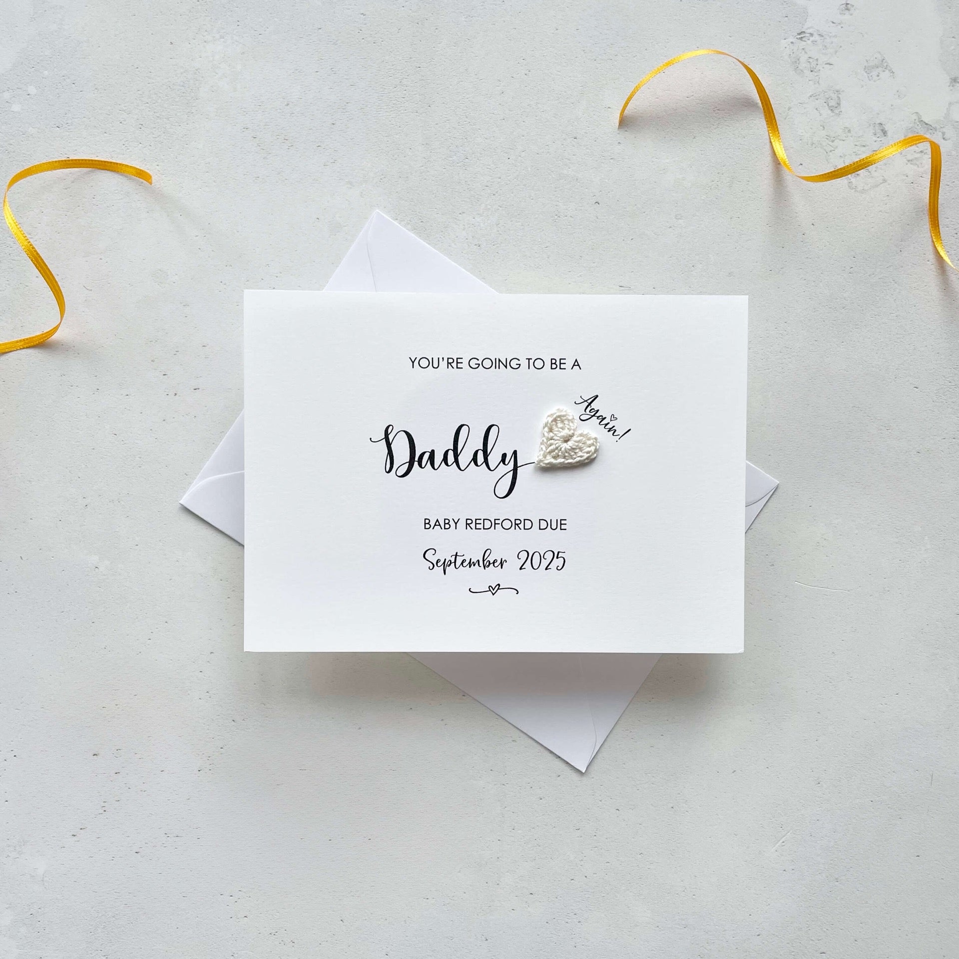 Surprise the soon-to-be Daddy in your life with this heartfelt 'You're going to be a Daddy' card. Finished with a crochet heart, this card expresses your excitement and emotion in the sweetest way.