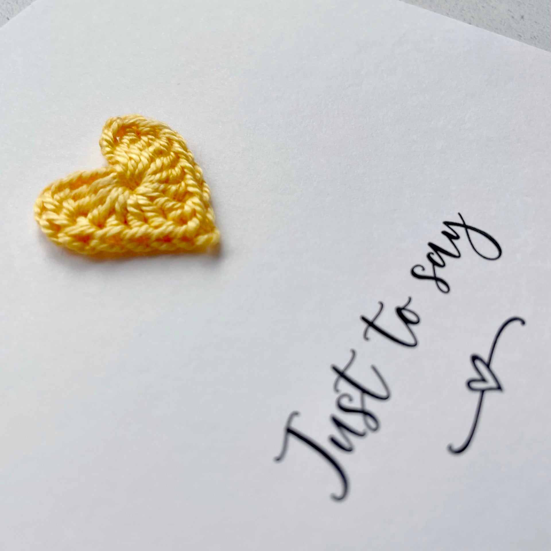 Say it with love with this Just to say card. Perfect for every occasion, the card is finished with a colourful crochet heart for an extra special touch. Show your loved ones just how much you care with this thoughtful card.
