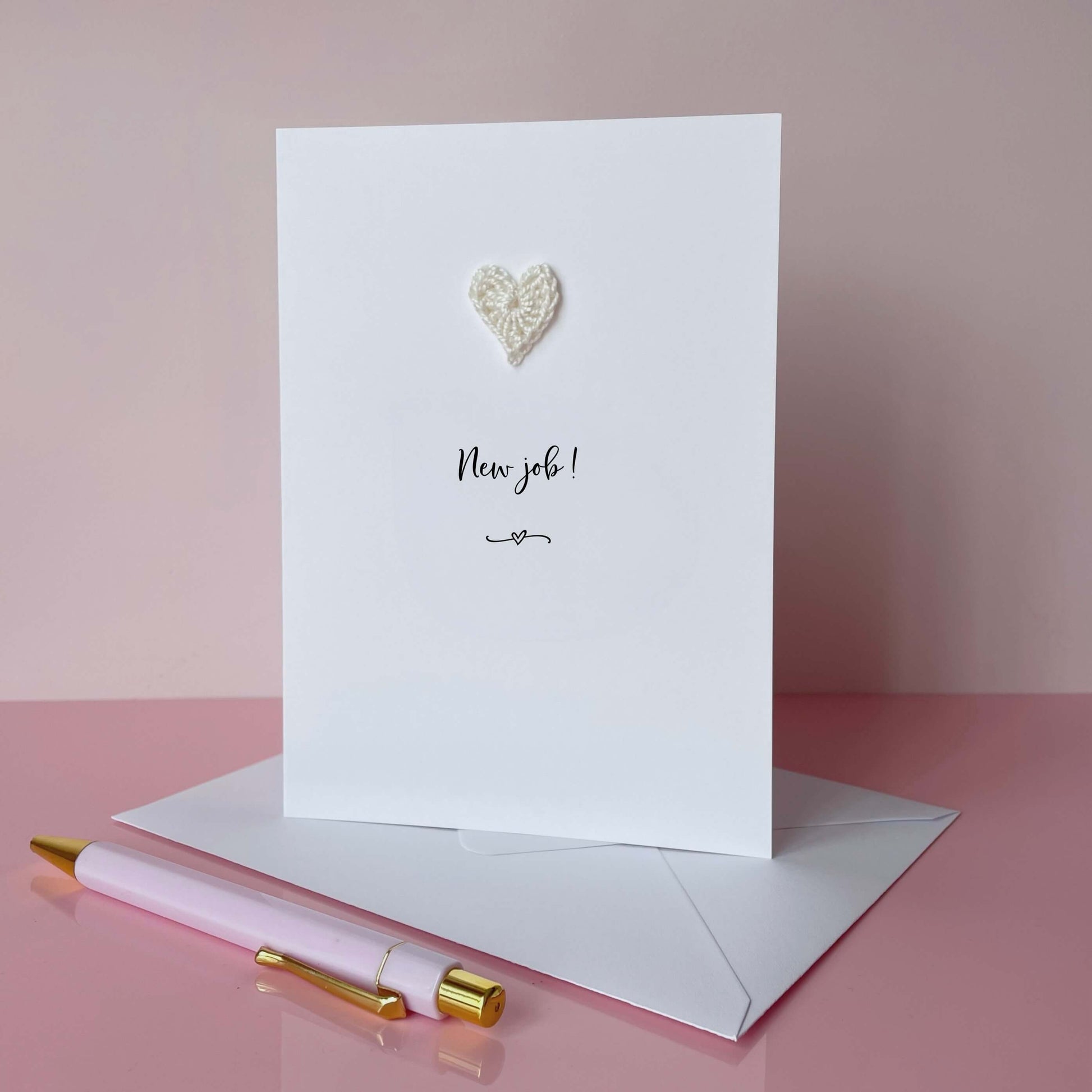Celebrate a fresh start with this cheerful New Job Card, topped with a vibrant handmade crochet heart - with 16 colours to choose from.