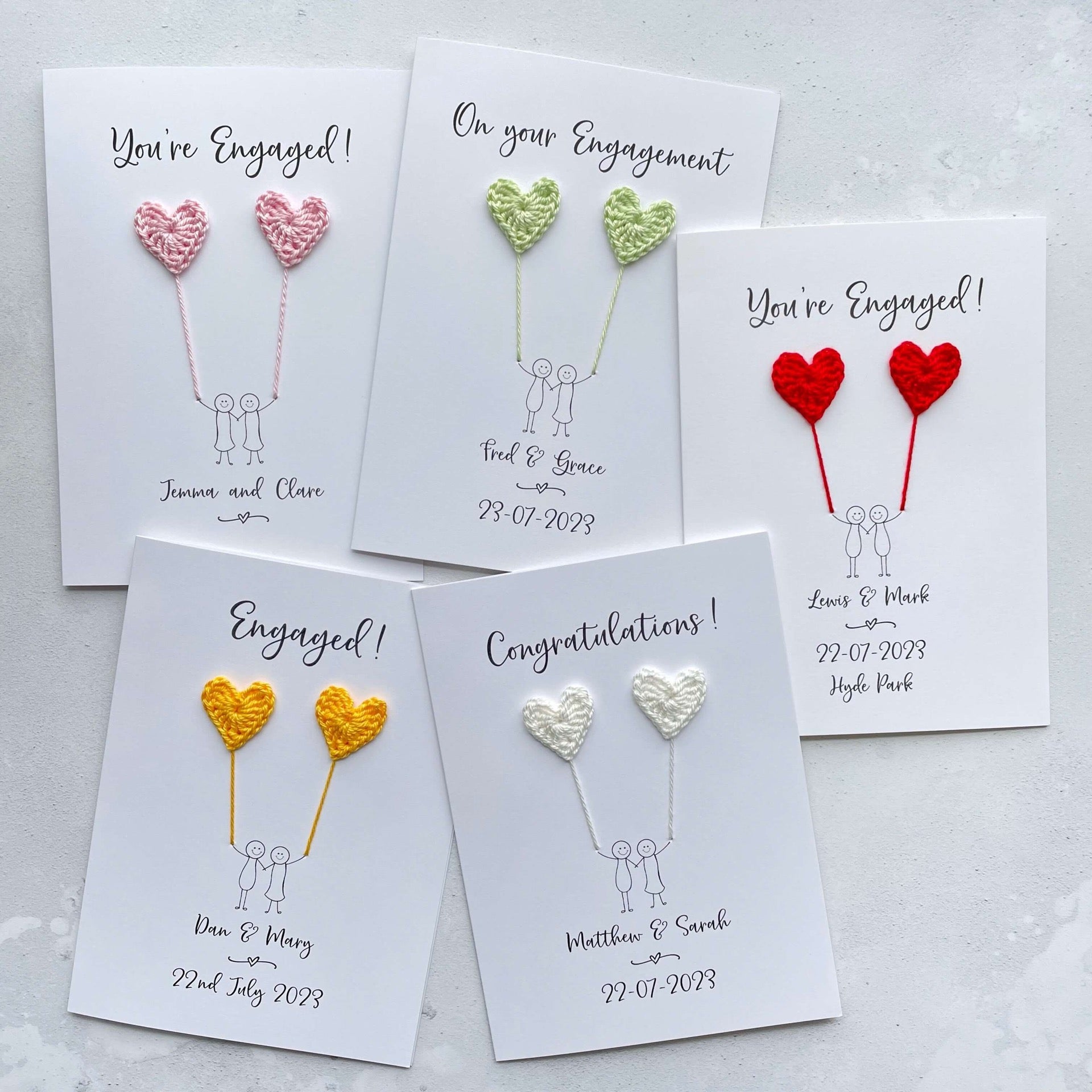 Personalisation for the front of your card: You can have up to 3 lines of text below the couple. This is usually names, date of engagement and location too if you want to add that as well.