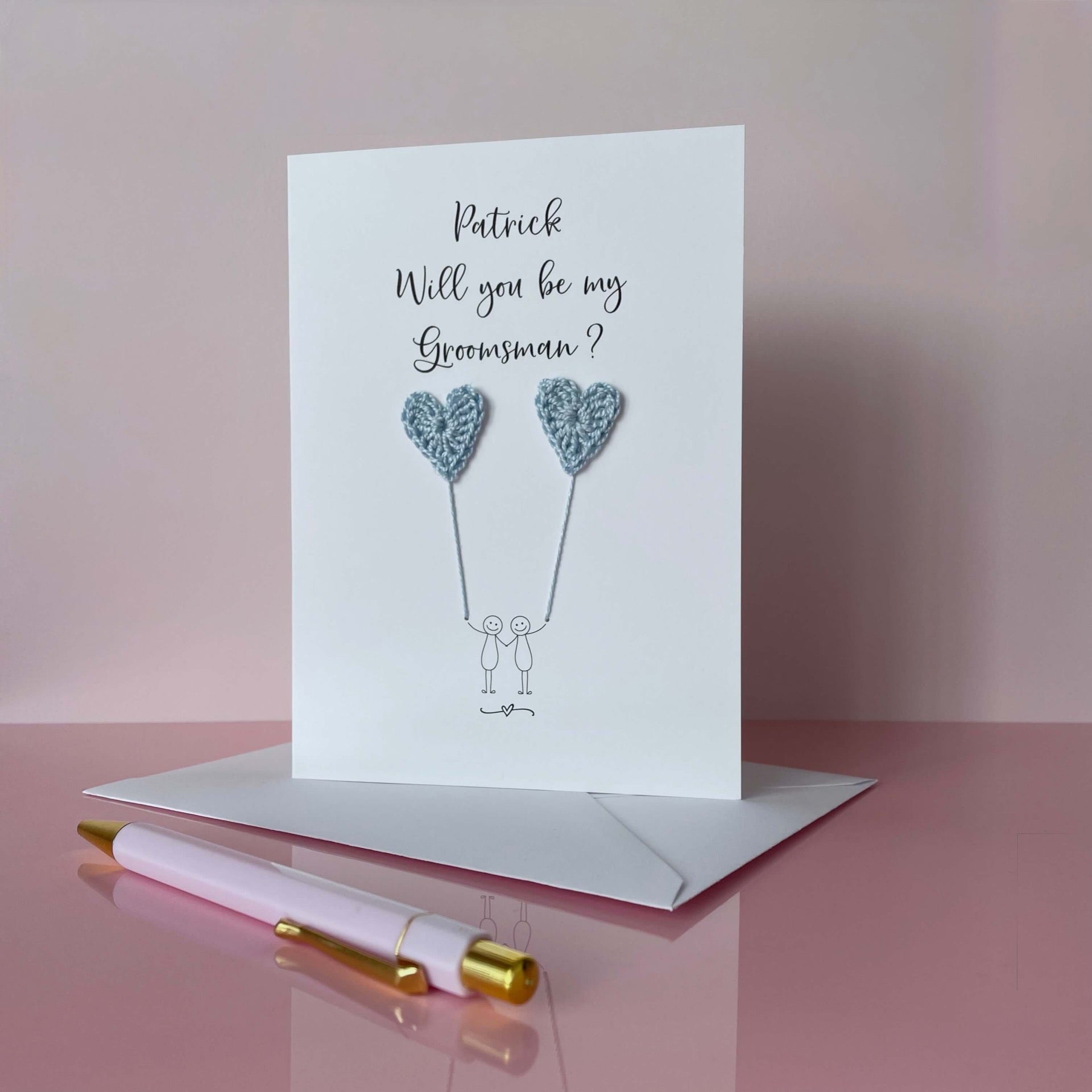 A simple, minimalist Will you be my Groomsman card. Personalise with his name for a special touch.