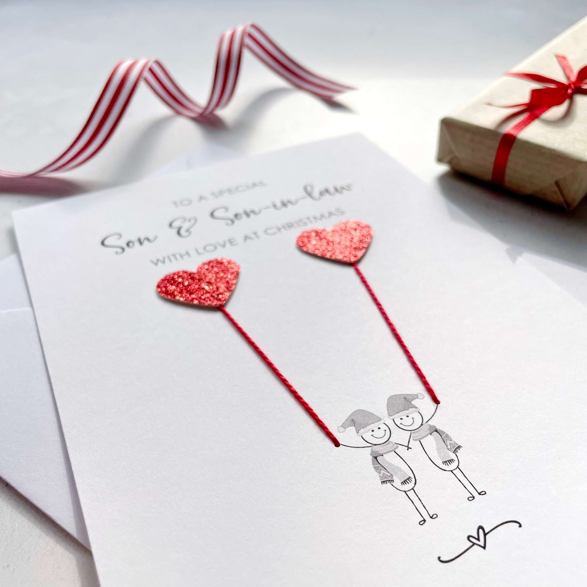 Surprise your Son and Son-in-law in with this cute Christmas card! The glitter hearts will make them smile and bring joy to their holiday.